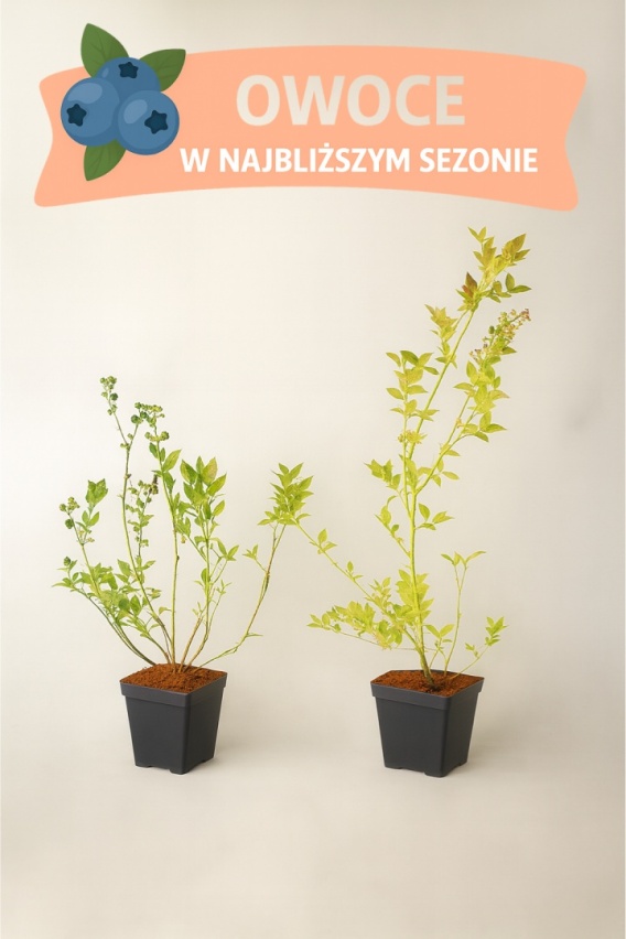 Borówka amerykańska Bluejay, 3-letnia (doniczka 0,5 L) — silnie rosnąca odmiana o aromatycznych, średnich owocach i równomiernym dojrzewaniu w środku lata.