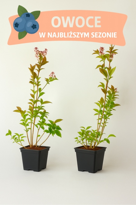 Borówka amerykańska Brigitta Blue, 3-letnia (doniczka 0,5 L) — późna odmiana o dużych, jędrnych jagodach i wyjątkowo długiej trwałości owoców po zbiorze.
